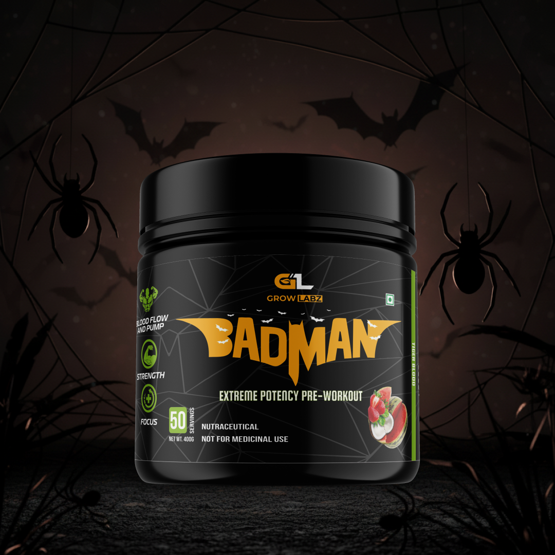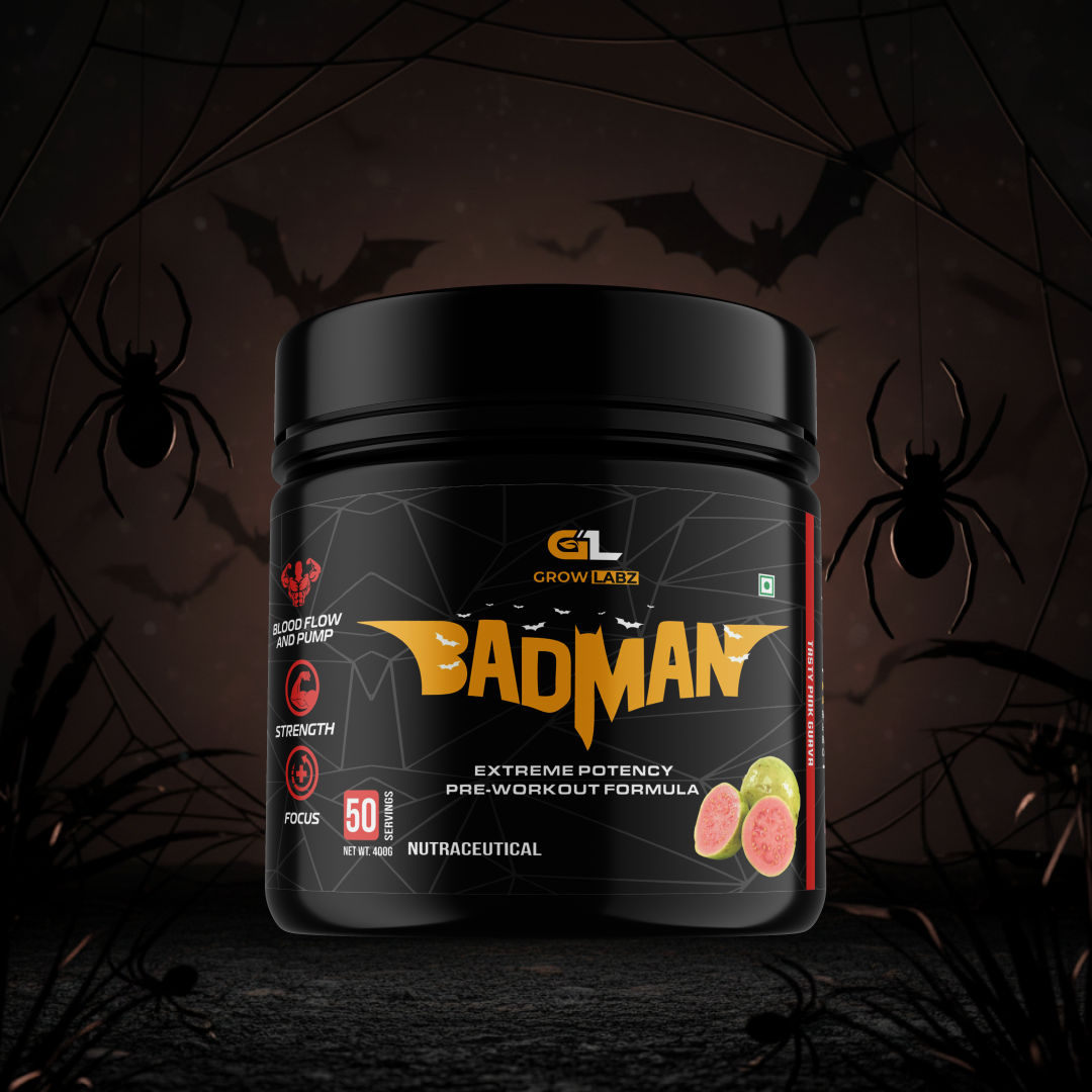 Unleash your inner beast with BADMAN by Grow Labz, a high-stim, extreme potency pre-workout designed to push your performance to the next level. Formulated for serious athletes and lifters, BADMAN amplifies your focus, strength, endurance, and blood flow to deliver skin-splitting pumps and unstoppable energy.