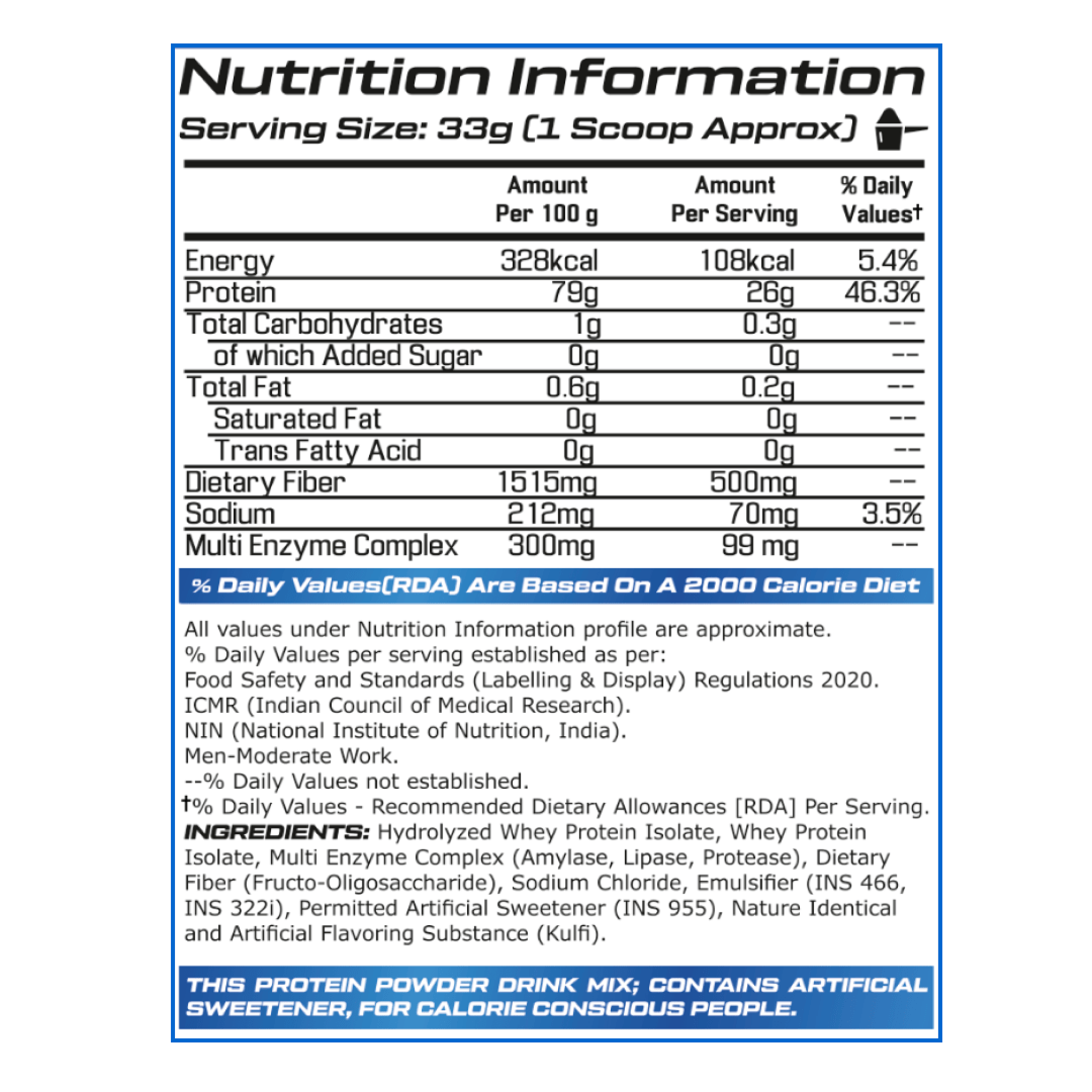 100% Hydrolyzed Isolate: Rapidly absorbed protein for faster muscle repair and growth.